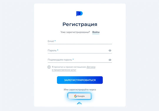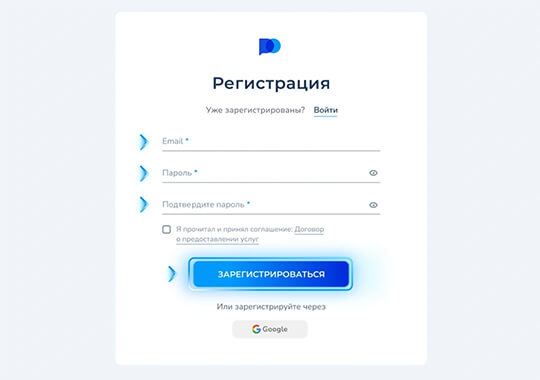 Зарегистрироваться очень просто. Для этого используйте свою электронную почту или аккаунт Google.