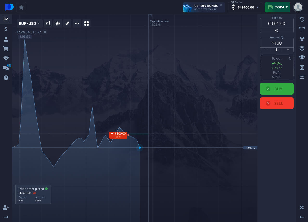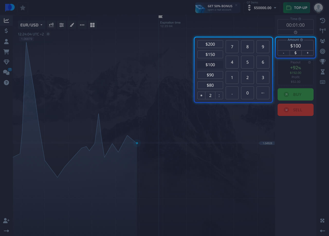 Weka kiasi cha uwekezaji, kiasi hiki kitakatwa kutoka kwenye salio la akaunti yako ya biashara ili kufungua biashara.