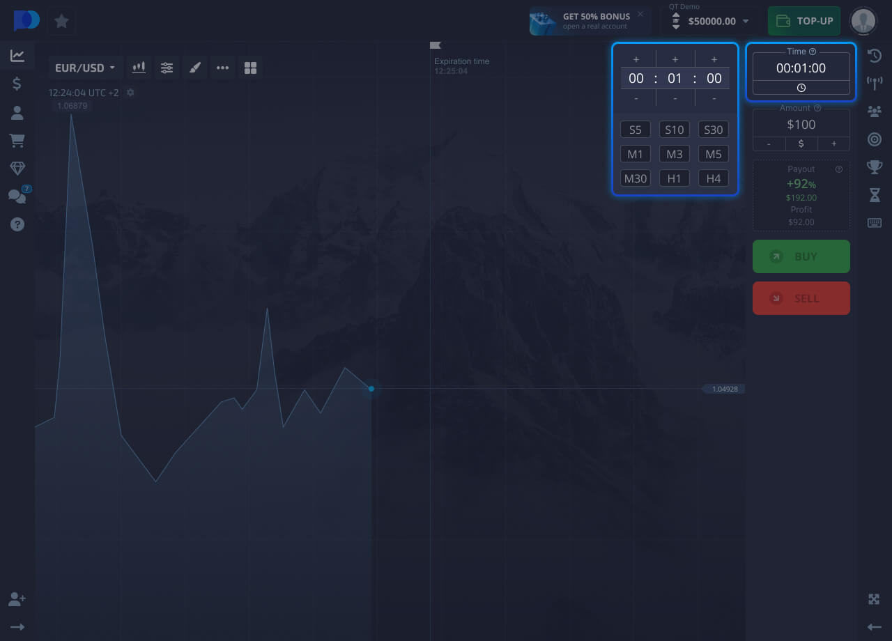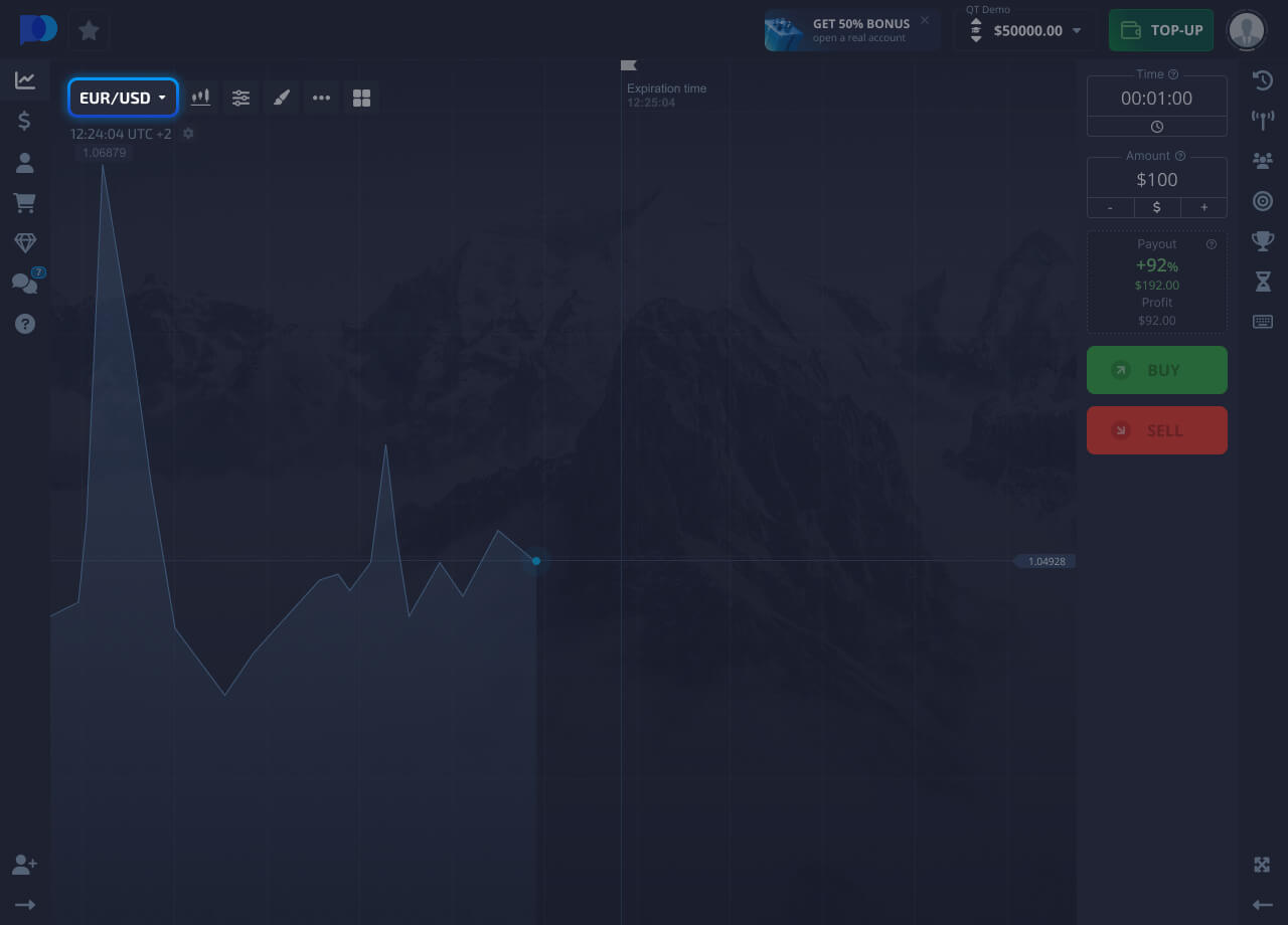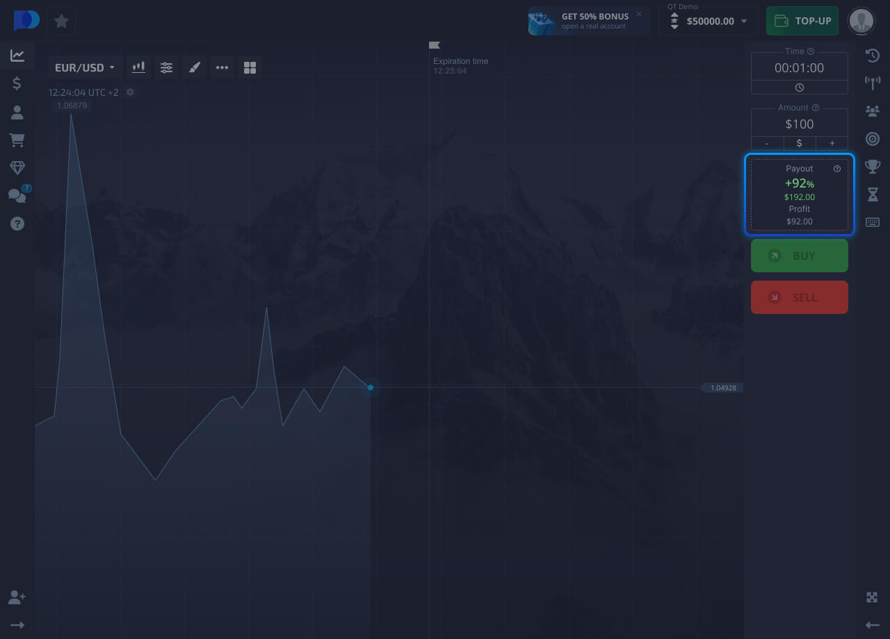 Chati inaonyesha jinsi bei ya mali inavyobadilika. Unahitaji kufanya utabiri: jinsi mwelekeo wa bei utabadilika katika kipindi fulani cha wakati, na ubofye kununua au kuuza kulingana na utabiri wako.