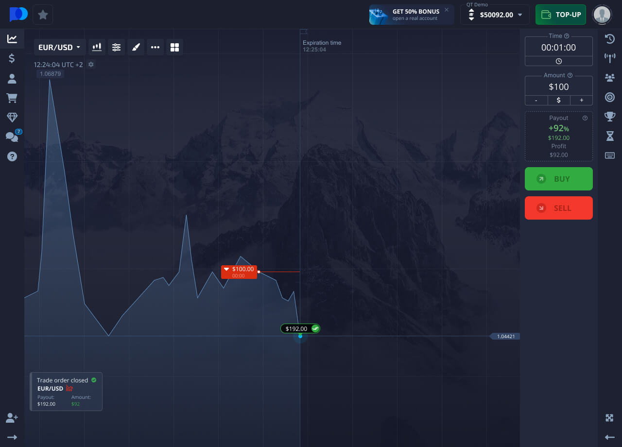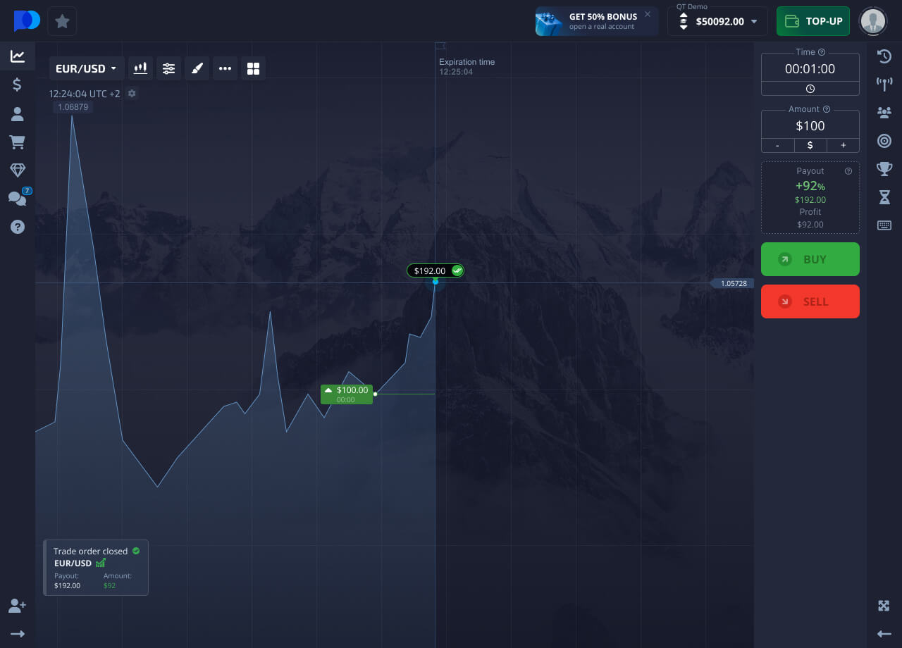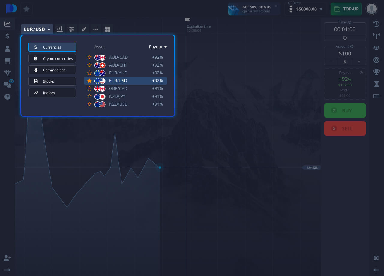 Chati inaonyesha jinsi bei ya mali inavyobadilika. Unahitaji kufanya utabiri: jinsi mwelekeo wa bei utabadilika katika kipindi fulani cha wakati, na ubofye kununua au kuuza kulingana na utabiri wako.